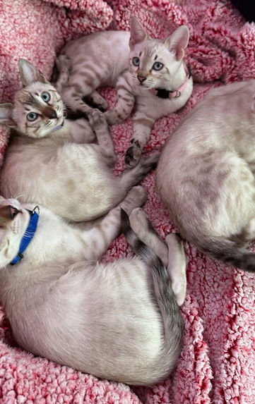 We want our kittens to have an amazing home with owner(s) that understand the needs of this AMAZING breed. We also want our kittens to have the best forever home experience, so we also provide a collar, a cat carrier with blanket, 13 pounds of current food (Balance Raw Diet), 15 pounds of cat litter, a bag of toys, scratching pad, a fishing pole cat toy, bag of current treats and toppers, and more. Each kitten has a personal folder with all the above records plus pictures of both parents & copies of both parents DNA test results.